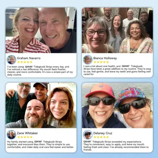 That changed when I started using Glimmerly® Tideglusib Oral Strips. At first, I was simply thinking, “Let me give it one more try.” Every night after brushing my teeth, I applied a strip and let it slowly dissolve on its own. The whole process was easy, gentle, and not bothersome at all. After about two weeks, I felt for the first time that things were starting to move in a better direction. The first change was not that my teeth looked “whiter,” but that the dark, dirty, damaged appearance began to fade. The yellow, hardened mineralized buildup around my teeth and gumline no longer looked as thick or as obvious as before. Even the darkest spots, the ones that looked badly hollowed out by decay, no longer seemed quite as frightening. As I kept using it, I noticed that the edges that once looked broken and incomplete seemed less damaged, and my teeth looked tighter, neater, and more whole overall. The unpleasant smell also disappeared. Looking back now, this kind of change has honestly felt like a lifesaver to me.”